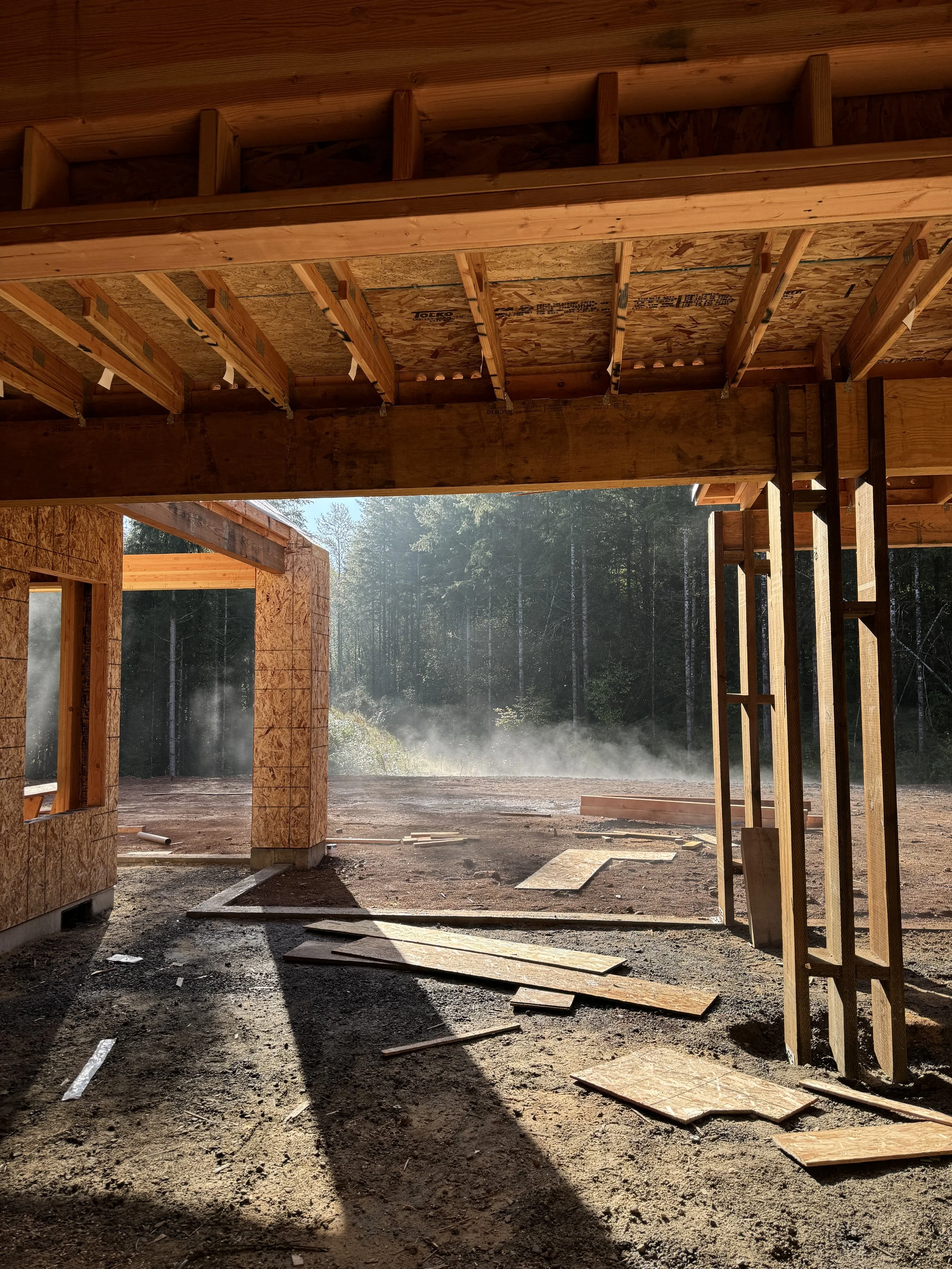 45.7379° N, 122.4870° WNESTLED IN THE MIDDLE OF 80 FORESTED ACRES IN THE WASHINGTON COUNTRYSIDE, A MODERN FARMHOUSE RETREAT IS DESIGNED FOR A YOUNG FAMILY, currently under construction.
